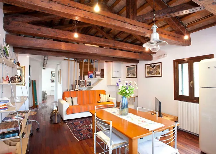 Questa struttura di 80 m² si trova a circa 6 minuti a piedi dal Campo del Ghetto. La Libreria Acqua Alta è raggiungibile in a 1 km di distanza, mentre l'aeroporto di Venezia Marco Polo dista 15 km. Potrai inoltre raggiungere il Palazzo Grassi, che è a breve distanza dal Di Franco Super Attico Appartamento.